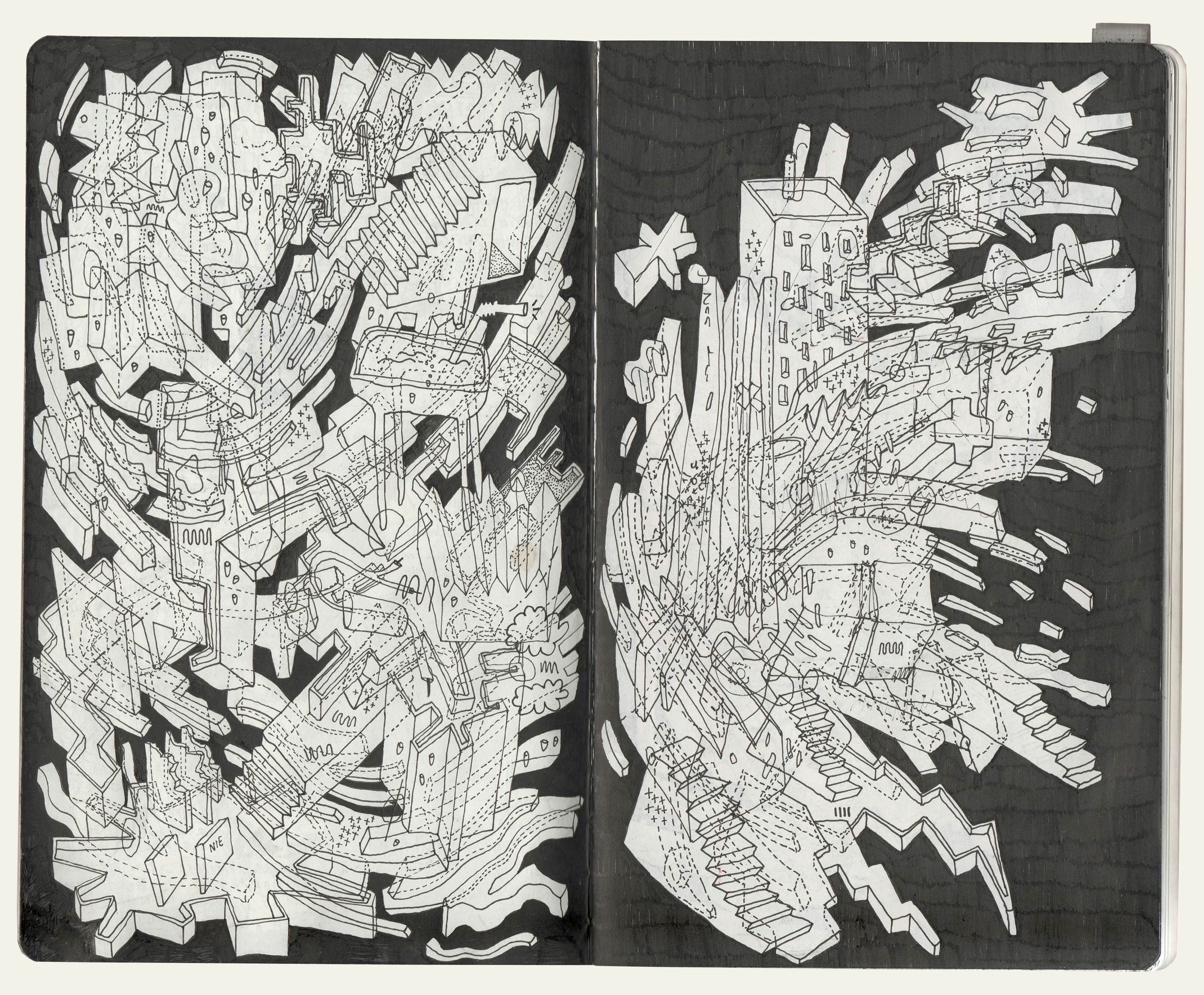 My graphic reflection during the times of crisis. The drawings are part of a broad collection of collages and sketches that capture empty cityscapes created by architecture, everyday objects and abstract forms and shapes that form an image that is rigid and stable, yet very fluid and abstract.